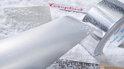 Aluminiumkaschierte Dämmstoffe kommen zumeist in Heizungskellern, Klimaanlagen oder anderen kälte- und wärmeführenden Leitungen zum Einsatz. Gerade die Wintermonate machen die Verklebung von Schnittstellen extrem schwierig, Feuchtigkeit oder Kälte stellen die Klebkraft vor große Herausforderungen. Und das kann gefährlich werden, insbesondere dann, wenn in den Abschnitten verschärfte Brandschutzregeln herrschen.